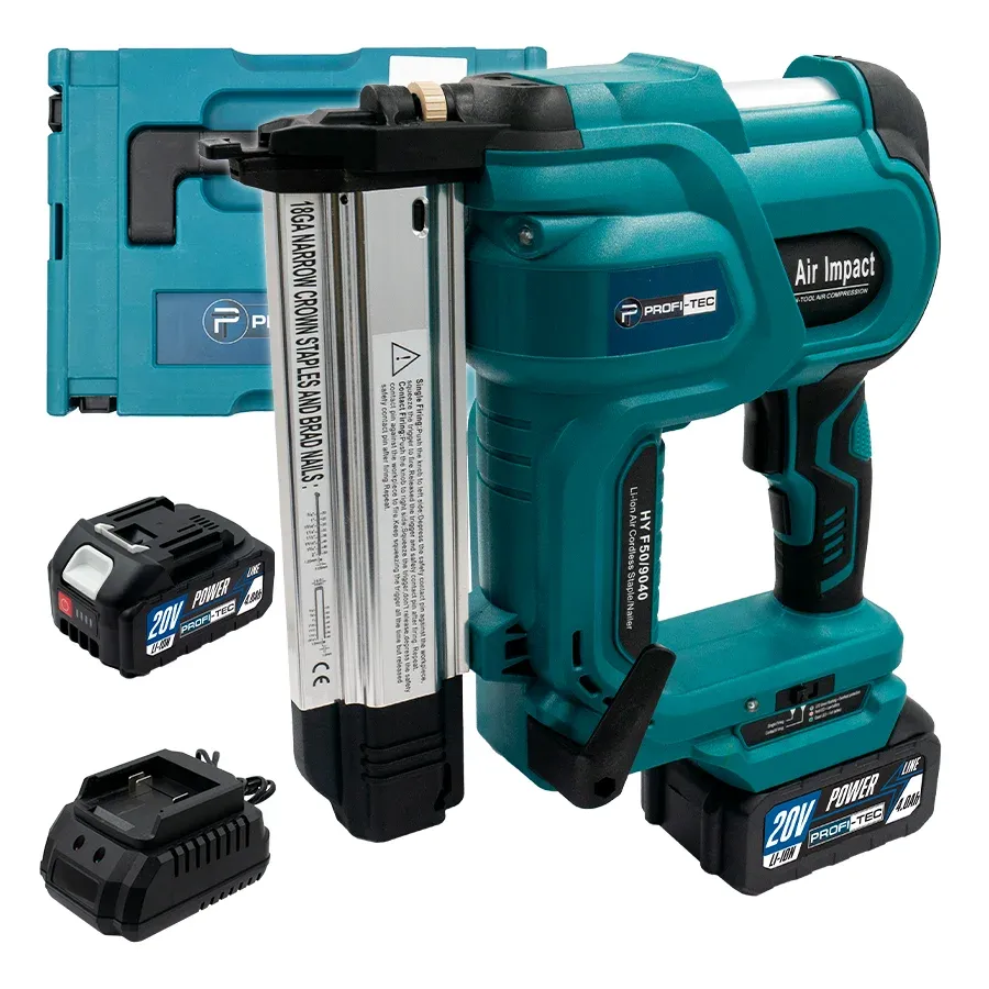 Акумуляторний цвяхозабивач/степлер PROFI-TEC PPT20BL POWERLine (2×PT2040MP (4.0 Аг), зарядний пристрій)