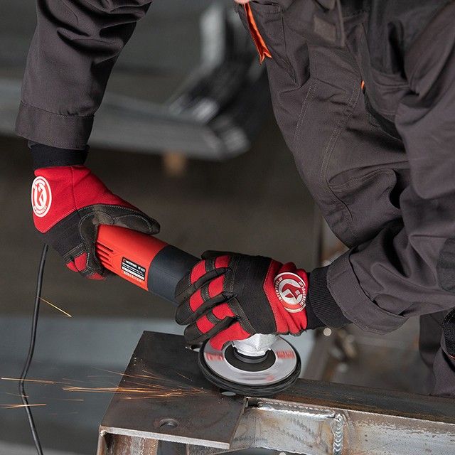Болгаркой можно работать одной рукой, благодаря небольшим габаритам, удобному расположению пусковой кнопки и небольшому диаметру диска. Кнопка «пуск» размещена сбоку корпуса, специально под большим пальцем. Фиксатор пусковой кнопки позволяет переводить инструмент в режим непрерывной работы.