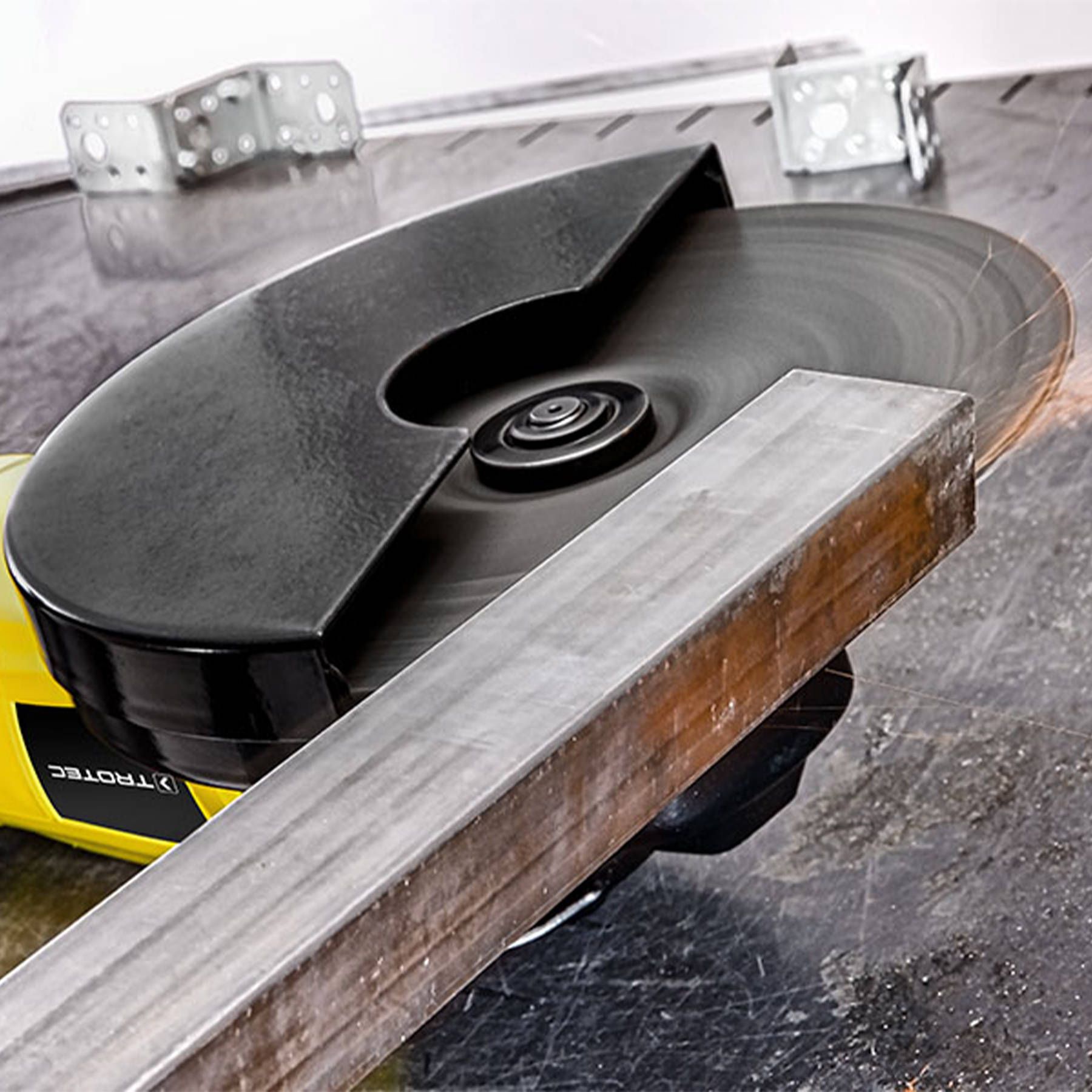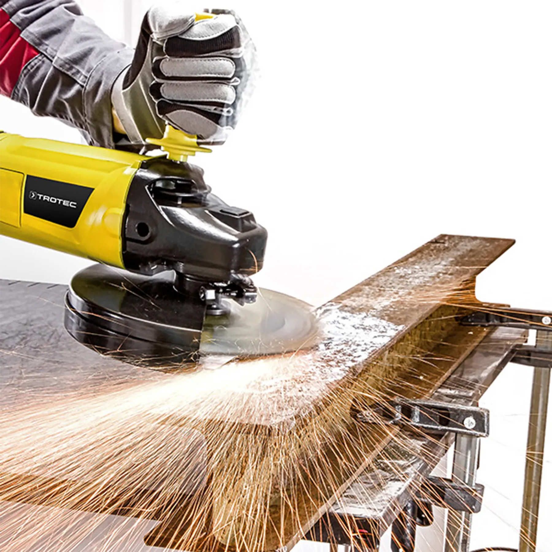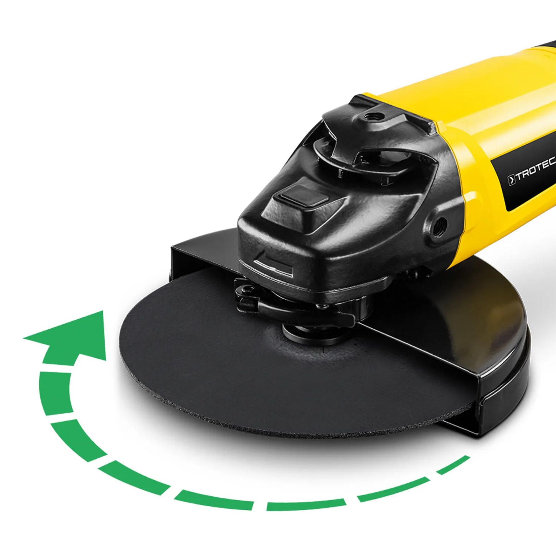Кутова шліфувальна машина Trotec PAGS 10-230 має високу стабільність і витривалість завдяки довговічній литій алюмінієвій зубчастій головці редуктора, та має електронне регулювання і підтримку максимальних обертів незалежно від навантаження при роботі, що робить інструмент більш ефективним для точної різки і обробки різних типів матеріалів.