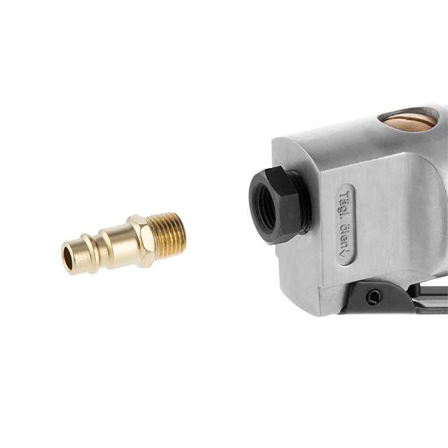 Легкая алюминиевая конструкция и малые габариты позволяют работать машинкой в местах с ограниченным доступом. Удобная широкая клавиша пуска с предохранителем для безопасной работы. Также предусмотрена боковая ручка для лучшего контроля над инструментом. Выход для шланга 1/4" оборудован универсальным латунным фитингом для быстрого подключения к пневмосистеме.