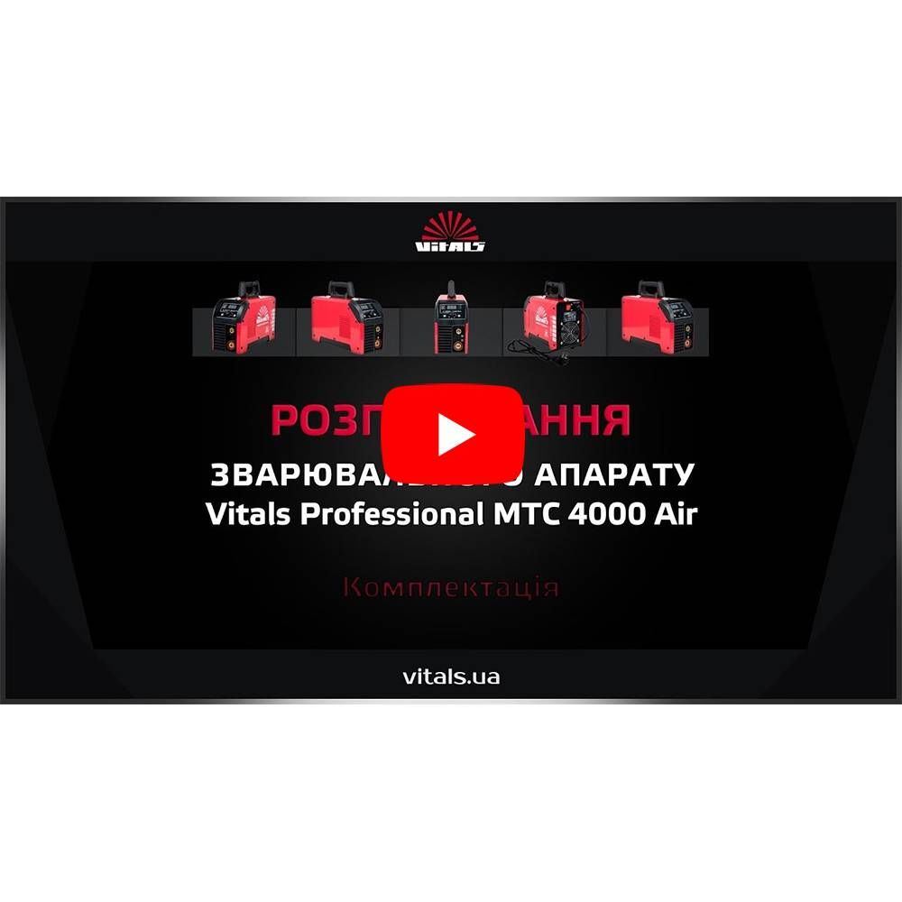 Vitals Professional MTC 4000 Air — це високоякісний зварювальний апарат інверторного типу. Призначений для професійного зварювання вуглецевої сталі, нержавіючої сталі, різних сплавів, титану, різання м’яких сталей, алюмінію, міді, різних сплавів тощо. Застосовується у важкій та легкій промисловості, будівництві, сфері послуг: авторемонті, автосервісі, виготовленні металевих конструкцій. Годиться для використання як на великому, так і малому виробництві.