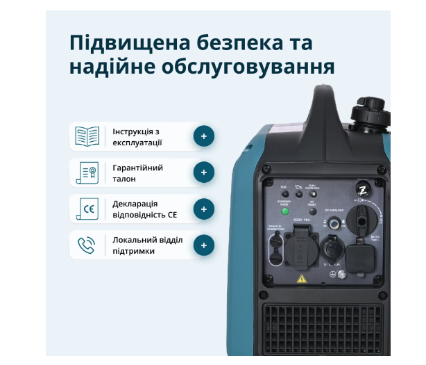 | Комплектація | Генератор, Упаковка, Інструкція, Свічний ключ, Викрутка РН2 6,0 мм, Чохол для аксесуарів, Ключ рожковий 8х10мм, Вилка 230В 16А |