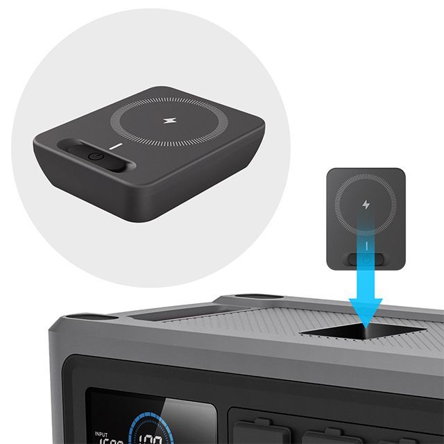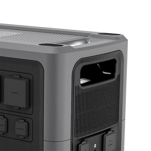 В устройстве предусмотрено три розетки 220В для подключения электроприборов, все порты AC могут работать одновременно, при условии, что общая мощность не превышает 2400 Вт. Также для зарядки предусмотрены: быстро заряжающий порт USB-C, мощностью 140 Вт - 2 выхода, порт USB-A, мощностью 22,5 Вт - 2 выхода, а также регулируемый выходной порт DC 12 В. Помимо зарядки и питания устройств, станция оснащена встроенной светодиодной панелью, что позволяет использовать ее как источник света. Для удобной транспортировки предусмотрены ручки в корпусе станции.