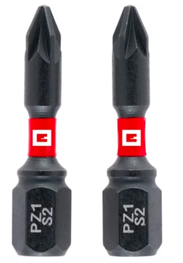 Біта ударна Pozidriv Einhell S2 1/4" PZ1 2 шт. (132040): Біта подвійний торсіон - наконечник виготовлений із сталі S2, фосфатованої марганцем вище середнього, що забезпечує дуже тривалий термін служби. Зона подвійного кручення забезпечує термін служби вище середнього та ефективно розподіляє зусилля, що діють на насадку Подвійна торсіонна зона зменшує поломку біти та забезпечує надійну роботу для складних проектів. Простий дизайн: доступний у простій версії, ідеально підходить для індивідуальних потреб. Хвостовик E 6.3 - з хвостовиком 1/4" E 6.3 насадка підходить до всіх звичайних акумуляторних викруток і стандартних (ударних) дрилів.