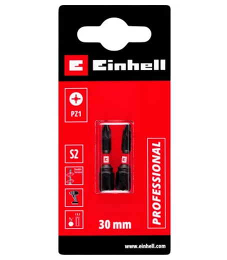 Біта подвійний торсіон ударна 30 мм, S2, PZ1, 2 шт, Einhell