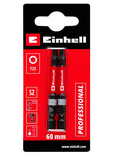 Біта подвійний торсіон 60 мм, S2, T25, 2 шт, Einhell