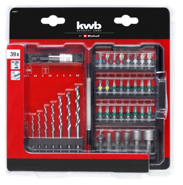 Набор бит и сверл по металлу HSS, 39 шт, L-Box (108911)