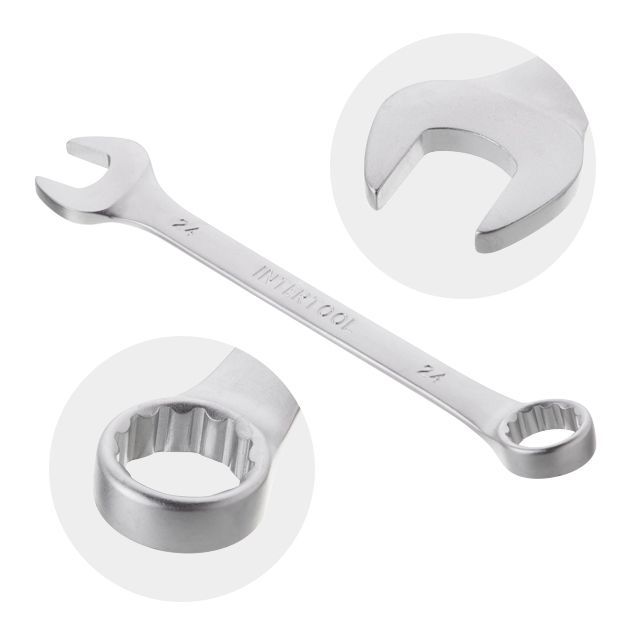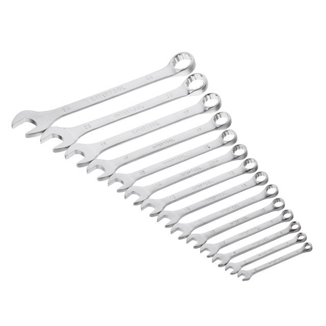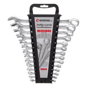Набор рожково-накидных ключей INTERTOOL HT-1252 с широкой комплектацией: 6; 7; 8; 9; 10; 11; 12; 13; 14; 15; 17; 19; 22; 24 мм, позволяет подобрать необходимый ключ под любые задачи для монтажа и демонтажа резьбовых соединений гаек и болтов.