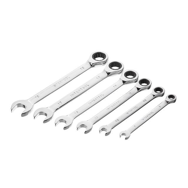 Набор ключей комбинированных с храповым механизмом 6ед., 8-19мм (8-10-13-15-17-19) Cr-V; PROF DIN3113 INTERTOOL XT-1302