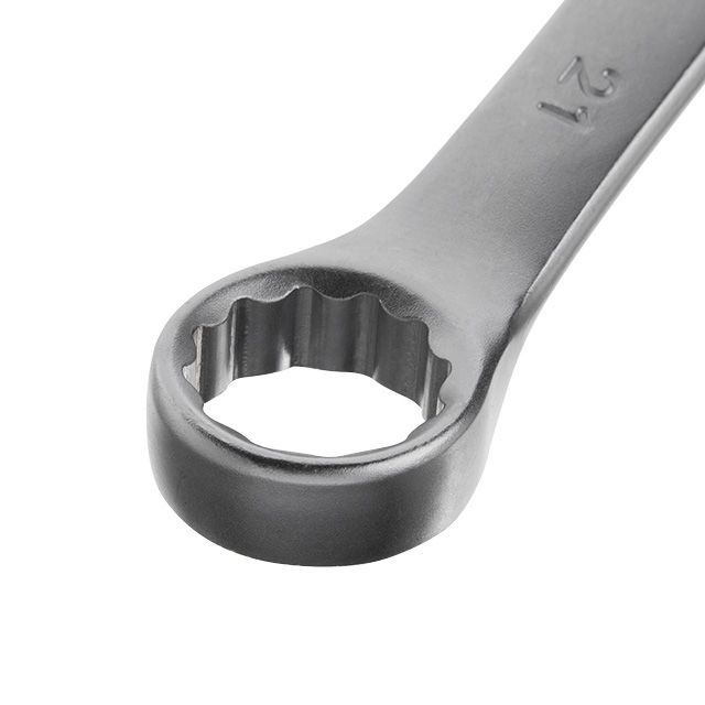 Рожковая часть ключа позволяет получить удобный доступ к креплению в труднодоступных местах. Накидная часть с двенадцатью гранями увеличивает площадь прилегания поверхностей и снижает риск срыва граней гаек и болтов.