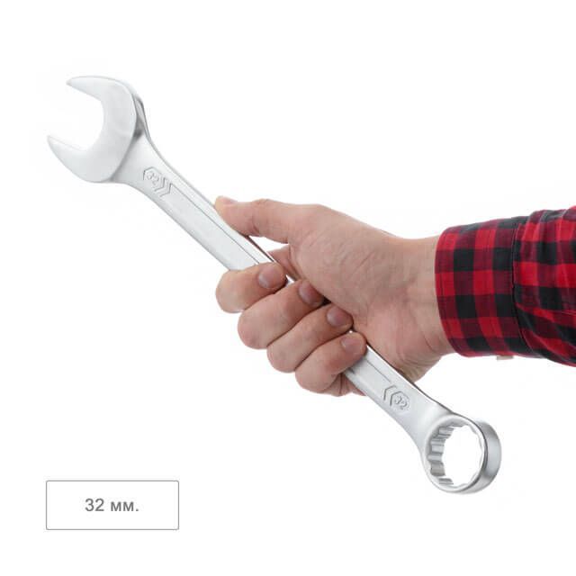 Комбинированный рожково-накидной ключ, размером 32 мм – это неотъемлемый инструмент для выполнения различных задач на откручивание, закручивание крепежей. Широко используется во всех сферах от бытового применения до профессионального, благодаря высоким эксплуатационным характеристикам.
