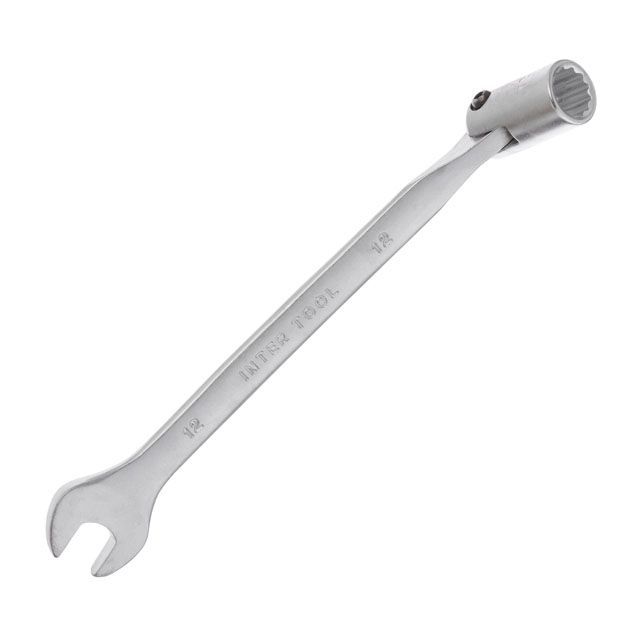 Ключ рожково-накидной шарнирный 12 мм Cr-V, покрытие сатин-хром INTERTOOL XT-1412