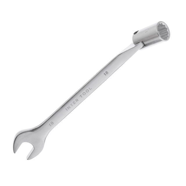 Ключ рожково-накидной шарнирный 18 мм, Cr-V, покрытие сатин-хром INTERTOOL XT-1418