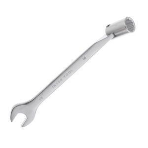 Рожковая часть ключа позволяет получить удобный доступ к креплению. Накидная часть с двенадцатью гранями увеличивает площадь прилегания поверхностей и снижает риск срыва граней гаек и болтов.