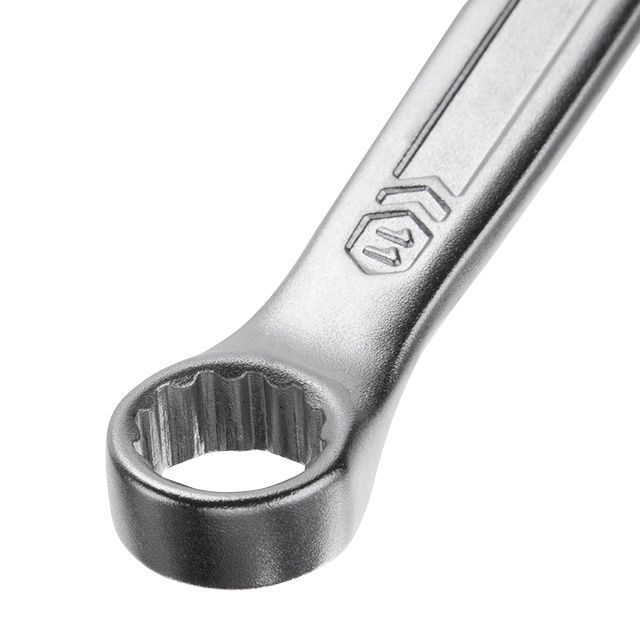 Рожковая часть ключа позволяет получить удобный доступ к креплению в труднодоступных местах. Накидная часть с двенадцатью гранями увеличивает площадь прилегания поверхностей и снижает риск срыва граней гаек и болтов.