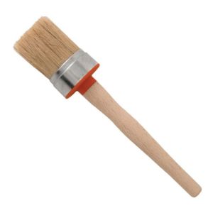 Диаметр кисти – 65 мм позволяет быстро обрабатывать большие по площади поверхности. Ворс кисточки надежно закреплен в металлическую оправу и не выпадает. Ручка легкая, деревянная, не выскальзывает из ладони и не перегружает руку при длительном использовании.