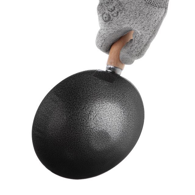Ковш изготовлен из прочной инструментальной стали с молотковым покрытием. Данное покрытие в отличие от других красок для металла, имеет более высокие показатели устойчивости к абразивному и химическому воздействию (бензин, кислота, щелочь и т.д.), а также характеризуется повышенной морозостойкостью и отлично выдерживает прямые солнечные лучи.