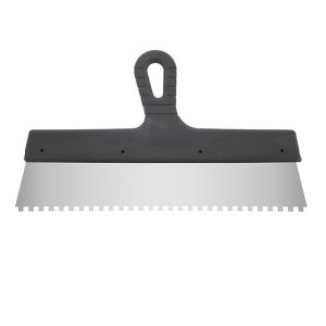 Шпатель строительный предназначен для нанесения клеевых и цементных растворов на керамическую плитку, натуральный камень, при проведении облицовочных работ. Такой шпатель может использоваться для внутренних и наружных малярных работ и отделки фасадов.