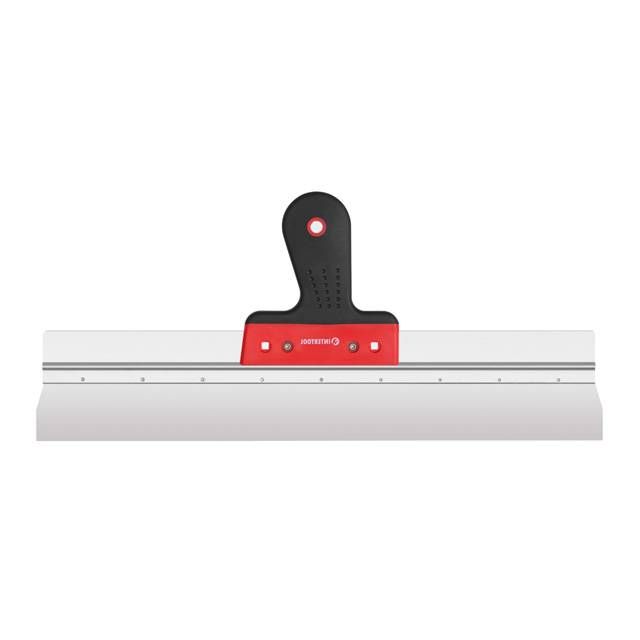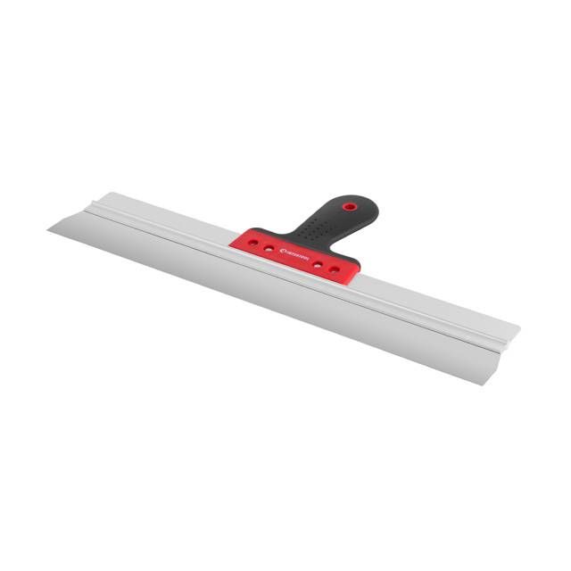 Рукоять из пластика и направляющая из алюминия делают шпатель достаточно легким и удобным в использовании. Ручка имеет специальную эргономичную форму, что обеспечивает максимально комфортную работу. Покрытие из TPR резины против скольжения в руках.