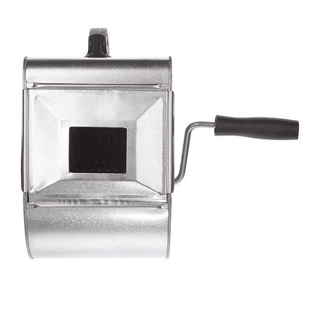 Данное устройство наносит раствор путем вращения боковой ручки, приводя в действие пружинистые гребенки с пластинчатыми зубцами, находящиеся на дне устройства, они отбрасывают налипшую на них строительную смесь в расположенное на стенке устройства отверстие.