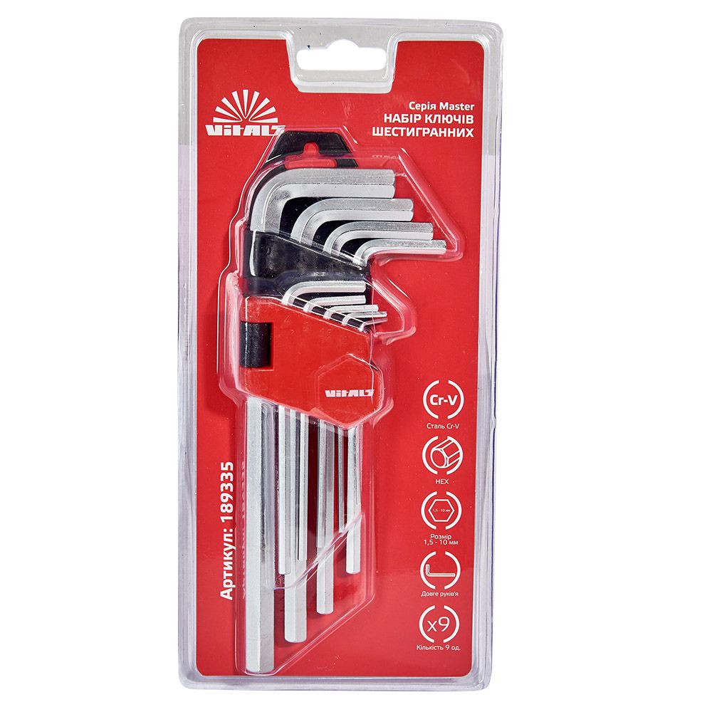 Набір ключів шестигранних подовжених 9 шт. 1,5–10 мм Vitals Master