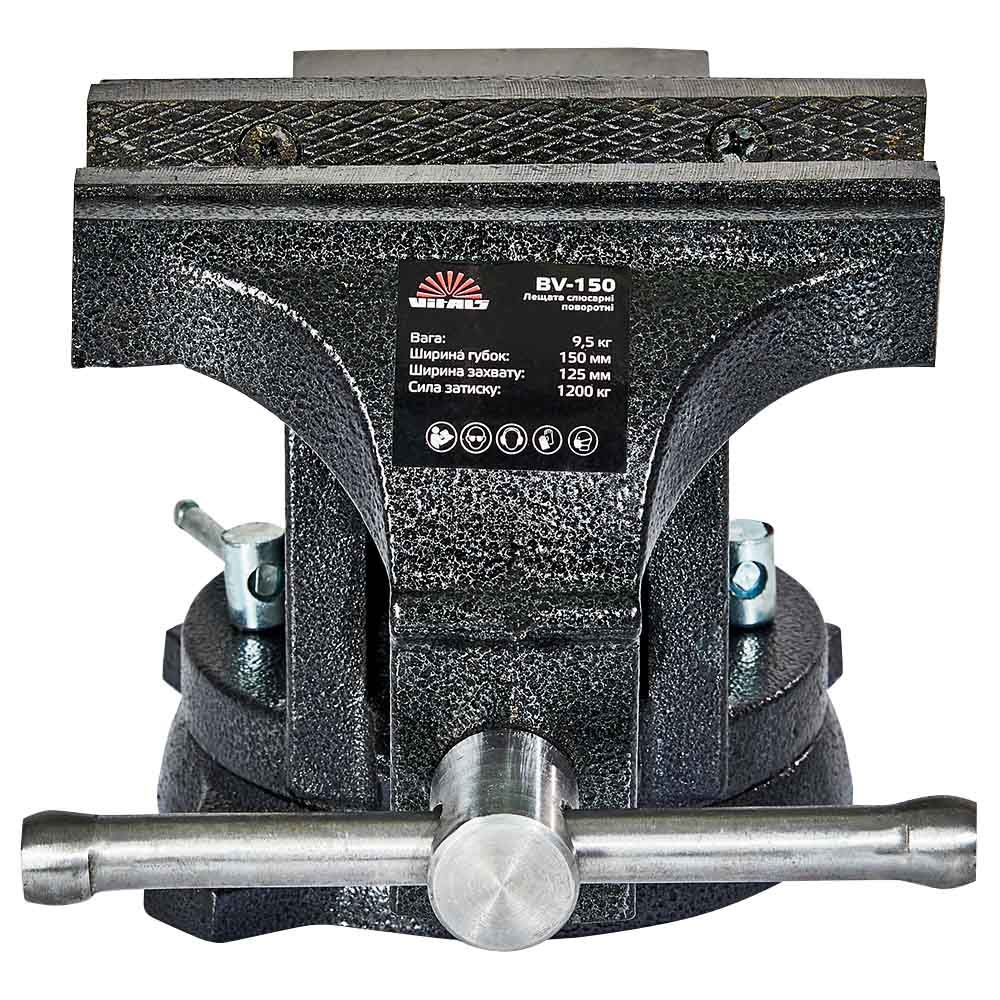 Лещата слюсарні поворотні Vitals BV-150 призначені для закріплення заготівель, предметів, деталей для подальшої обробки.
