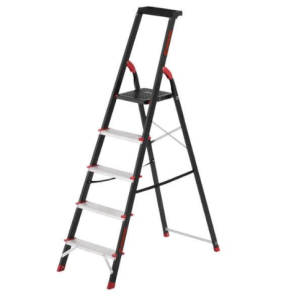 Стремянка 5 ступеней, лоток для инвентаря, стальной профиль, высота верхней ступени 1065мм, 457х890х1570мм, 150кг INTERTOOL LT-0055