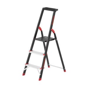 Стремянка изготовлена из прочного стального профиля с алюминиевыми ступенями. Рифленые ступени не позволят скользить ноге и обеспечивают безопасный подъем, а также удобное положение во время работы. Стремянка соответствует европейскому стандарту EN131 и выдерживает нагрузку до 150 кг.