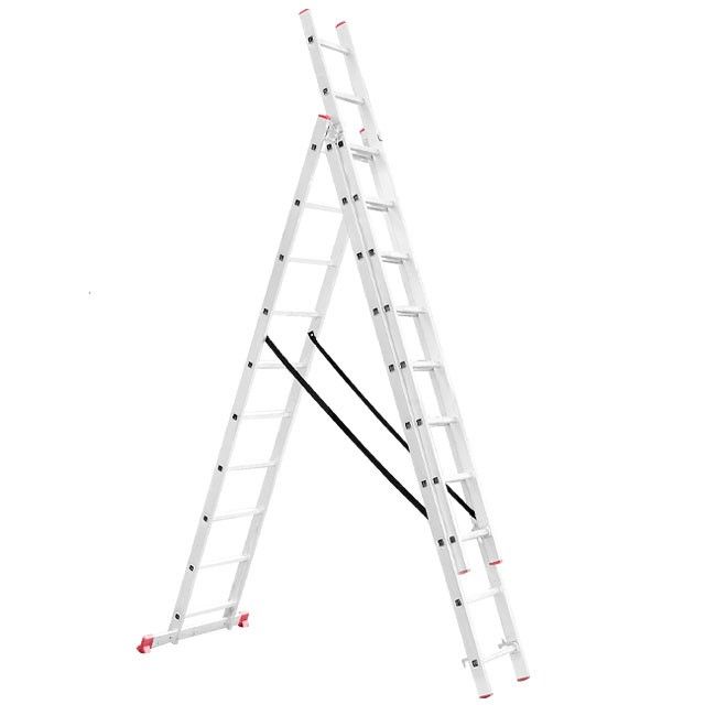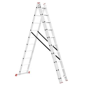 Складная трехсекционная лестница пригодится в любой ситуации, как для профессиональных мастеров для работы на высоте, так и для бытовых нужд, а также для работников складов, магазинов и пр. Она универсальная и подходит под любые задачи, максимальная высота составляет 6,77 метров, при этом лестница может трансформироваться в любое из 4 положений. Удобна для использования в домашнем хозяйстве, например, заменить лампочки, покрасить стены, помыть окна, также ее можно использовать в качестве чердачной лестницы и пр.