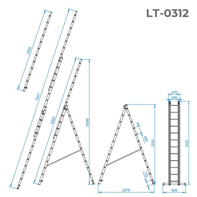 Конструкция позволяет использовать её и как стремянку и как приставную лестницу, а в сложенном виде имеет небольшие габариты для хранения. С помощью ремней и замков безопасности, вы с легкостью сможете установить лестницу в нужном вам положении. Функциональность лестницы может быть расширена с помощью дополнительной ступени-полки LT-6000.