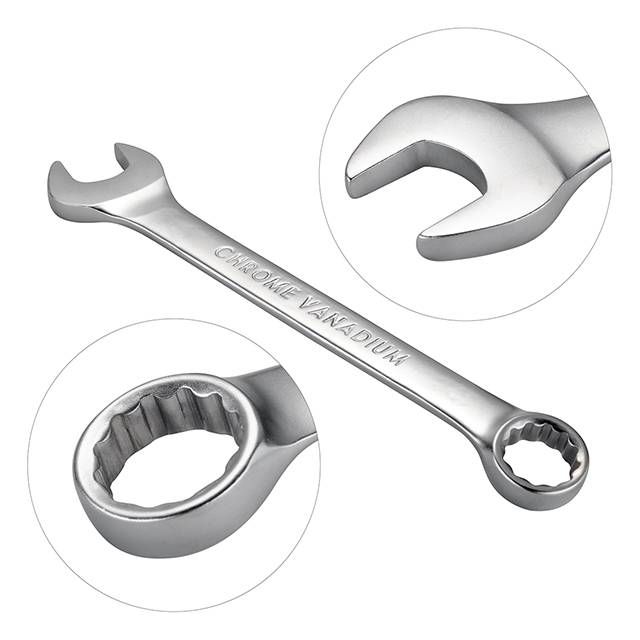 Рожковая часть ключа позволяет получить удобный доступ к креплению в труднодоступных местах. Накидная часть с двенадцатью гранями увеличивает площадь прилегания поверхностей и снижает риск срыва граней гаек и болтов.