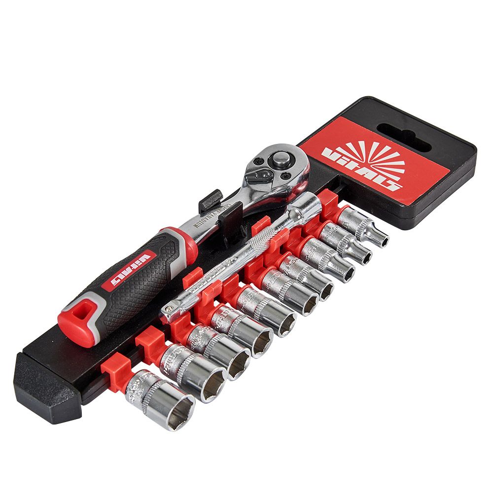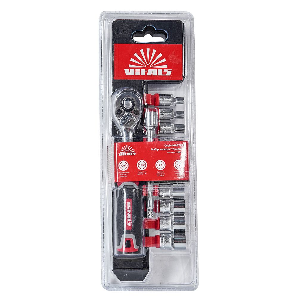 Набір торцевих головок з тріскачкою 1/4″ Vitals Master призначений для монтажу та демонтажу різних різьбових з'єднань.
