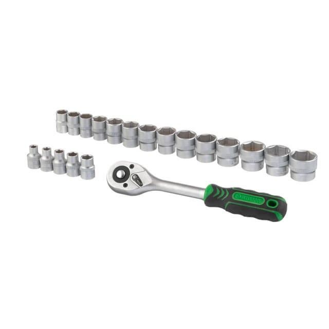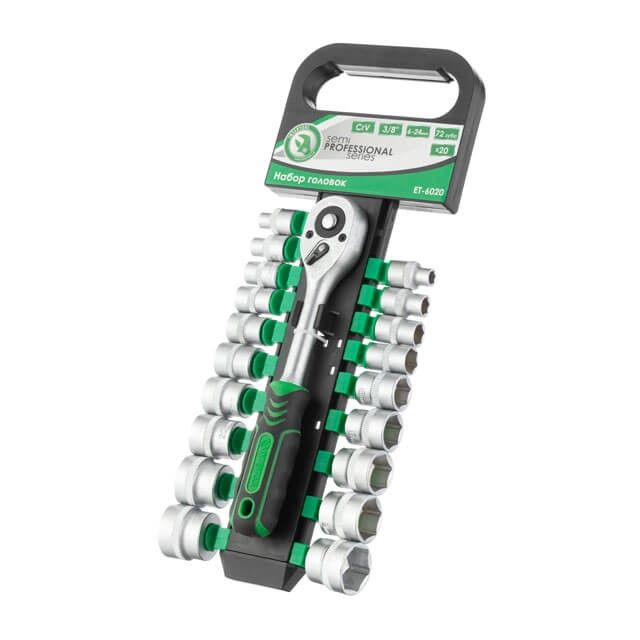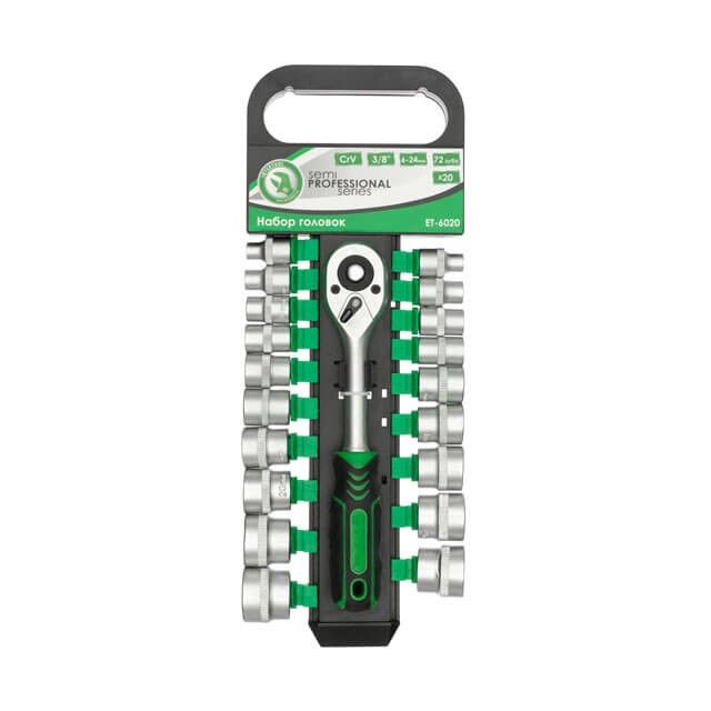 Набор торцевых головок 6-24 мм, 3/8", рукоятка с храповым механизмом, 20 ед. INTERTOOL ET-6020
