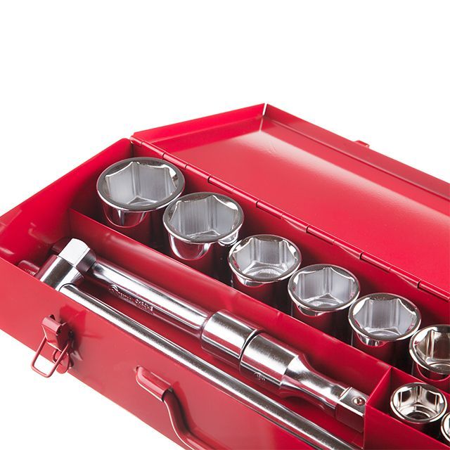 Набор пригодится для ремонта крупногабаритной техники вроде грузовиков, так как содержит 16 торцевых головок больших диаметров 19-50 мм.