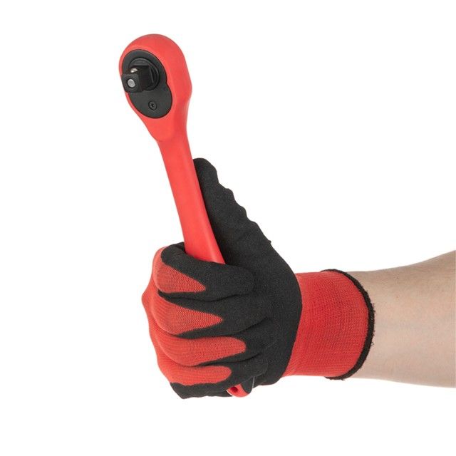 Механизм трещоток имеет плавный ход в 72 зубца, отличается высокой точностью и износостойкостью. Быстрый сброс головок и наличие реверса упростят и во множество раз ускорят работу мастера. Изогнутая форма рукояток для удобной работы в труднодоступных местах. Головки надежно фиксируются на посадочных квадратах трещоток, не спадают и плотно прилегают к поверхности крепежа. На каждой головке нанесены насечки для предотвращения скольжения в грязных руках или в рукавицах. Трещотки полностью покрыты защитным слоем полипропилена с резиновой накладкой в месте хвата для лучшей фиксации в руке, не скользит и не выпадает.