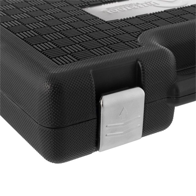 Кейс изготовляется из ударопрочного пластика с металлическими замками. Все инструменты плотно зафиксированы в ячейках, а наличие поролоновой прослойки не позволяет высыпаться набору при транспортировке.