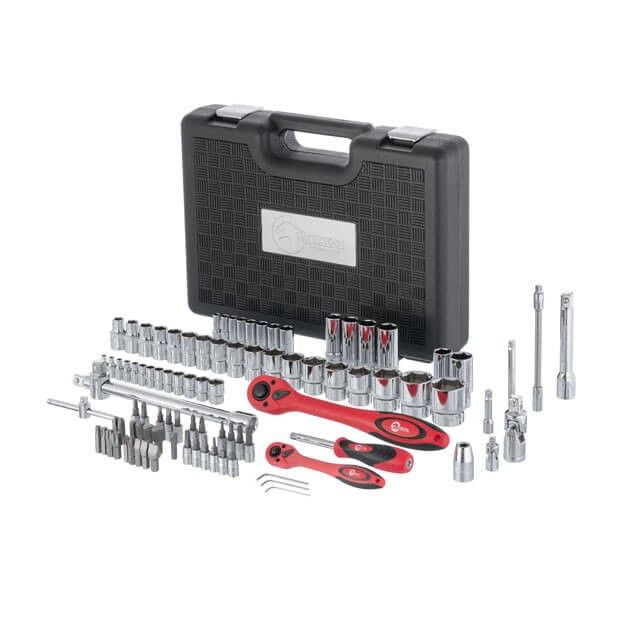 Набор подобран таким образом, что подходит как для профессионального автомастера в шиномонтаже, так и для хозяина, который часто делает все своими руками. Разнообразие торцевых головок в наборе, позволяет выполнять подавляющее большинство задач в ремонте автомобиля, а также техники.