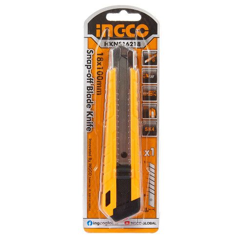 Ніж із сегментним лезом 18 мм INGCO призначений для різання паперу, картону, підлогових покриттів і інших матеріалів.