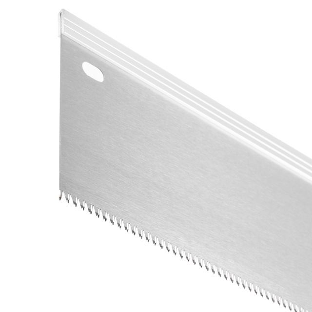Полотно ножовки изготовлено из высококачественной углеродистой стали твердостью 55 HRC. Трехсторонняя заточка зубьев с шагом 12x1" обеспечивает быстрый рез. Длина рабочей поверхности — 350 мм. Усиленный обушок в сочетании с утолщенным полотном предохраняют режущую кромку от деформаций и позволяют более точно выполнять пропил.