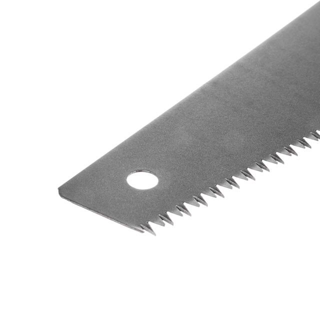 Ножовка по дереву изготовлена из прочной, закаленной стали, твердостью 55 HRC. Утолщенное полотно обеспечивает повышенную точность пиления. Каленые зубья в количестве 7 зубцов x 1 дюйм, имеют тройную заточку и обеспечивают быстрый рез в обе стороны – как вперед, так и на себя. Зубья пилы закалены, сохраняют остроту режущей кромки и не требуют заточки.