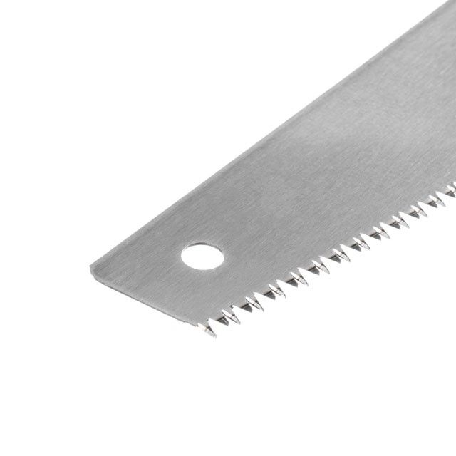 Ножовка по дереву изготовлена из прочной, закаленной стали, твердостью 55 HRC. Плотное утолщенное полотно обеспечивает повышенную точность пиления. Длина рабочей поверхности — 500 мм. Каленые зубья (7 зубьев x 1 дюйм) особой формы с тройной заточкой обеспечивают быстрый рез в обе стороны – как вперед, так и на себя. Зубцы пилы закалены, сохраняют остроту режущей кромки и не требуют заточки.