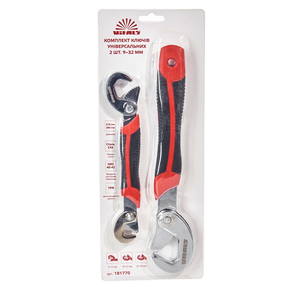 Комплект ключів універсальних 2 шт. 9–32 мм Vitals — це ручні інструменти в наборі, які застосовуються при монтажі та демонтажі з'єднань.