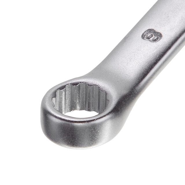 Рожковая часть ключа позволяет получить удобный доступ к креплению в труднодоступных местах. Накидная часть с двенадцатью гранями увеличивает площадь прилегания поверхностей и снижает риск срыва граней гаек и болтов.