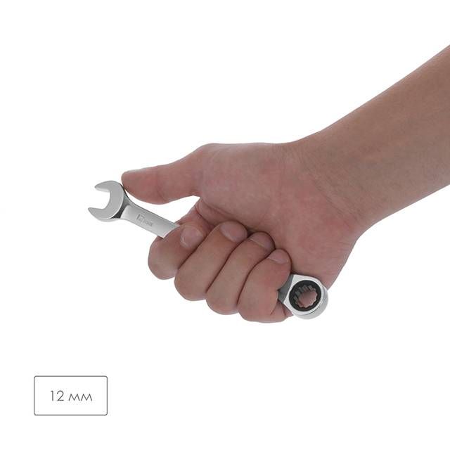Комбинированный ключ с трещоткой, размером 12 мм предназначен для монтажа и демонтажа резьбовых соединений гаек и болтов.