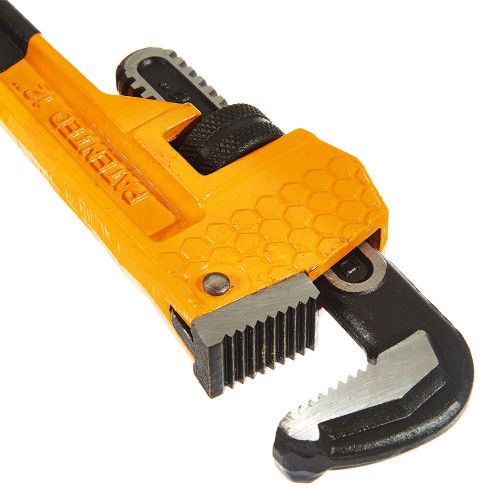 Розвідний трубний ключ Stillson INGCO INDUSTRIAL – це інструмент з розсувними губками, який має насічки для збільшення площі контакту з поверхнею деталі.