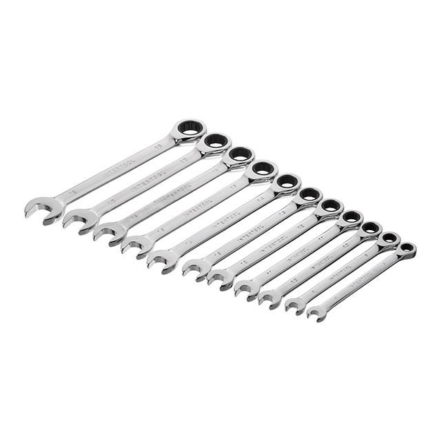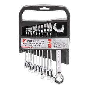 Набор рожково-накидных ключей с трещоткой INTERTOOL XT-1304 содержит наиболее популярные размеры: 8, 9, 10, 11, 12, 13, 14, 15, 16, 17, 19 мм, что позволяет подобрать необходимый ключ под любые задачи для монтажа и демонтажа резьбовых соединений гаек и болтов.