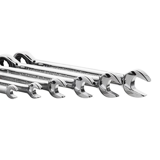 Ключи изготовлены из прочной Cr-V стали, что гарантирует исключительную износостойкость и долговечность. Отлично выдерживают постоянные нагрузки и обладают высокой антикоррозийной стойкостью. Поверхность ключа глянцевая хромированная, обеспечивает защиту от коррозии, что продлевает срок службы инструмента. Гладкая поверхность легко очищается от грязи, масла и других загрязнений, что упрощает уход за ключами.