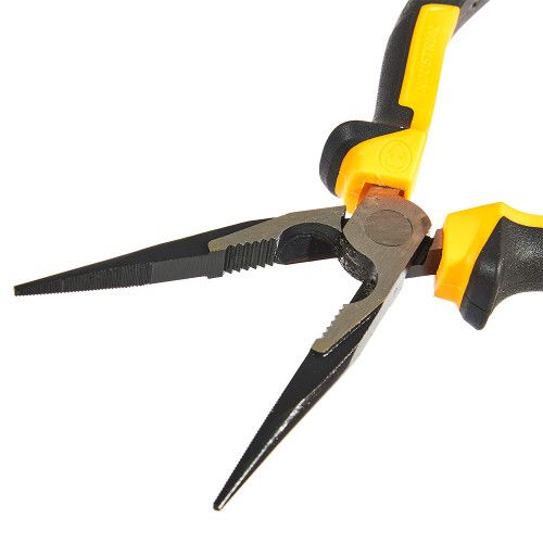 Подовжені губки довгогубців 200 мм INGCO HLNP28208 INDUSTRIAL виготовлені з високоміцної сталі й оброблені антикорозійним маслом. Для надійного захоплення і зниження стомлюваності кисті інструмент забезпечений двокомпонентними руків’ями. Довжина інструмента 200 мм.