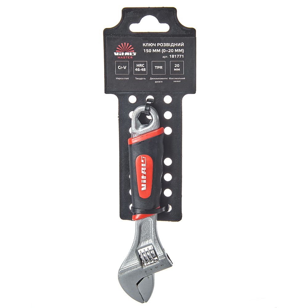 Ключ розвідний 150 мм (0–24 мм) CrV Vitals Master застосовується для монтажу та демонтажу різьбових з'єднань.