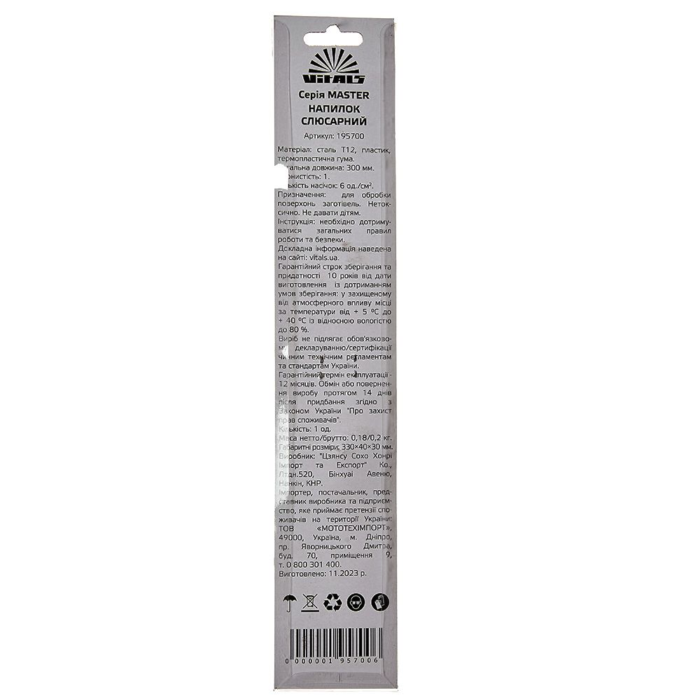 Опис напилку квадратного 200 мм Vitals Master